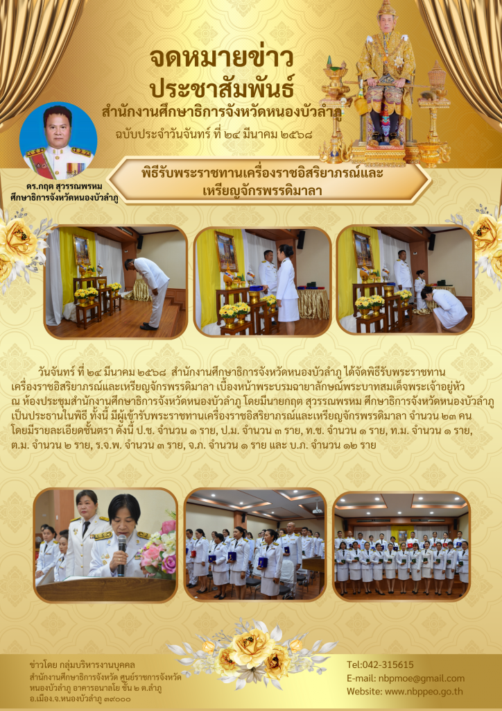 ประกาศรายชื่อผู้ได้รับคัดเลือกเป็นบุคลากรดีเด่น “ครูดี ศรีชุมชน คนลุ่มภู” ประจำปีงบประมาณ พ.ศ. 2568 ของจังหวัดหนองบัวลำภู