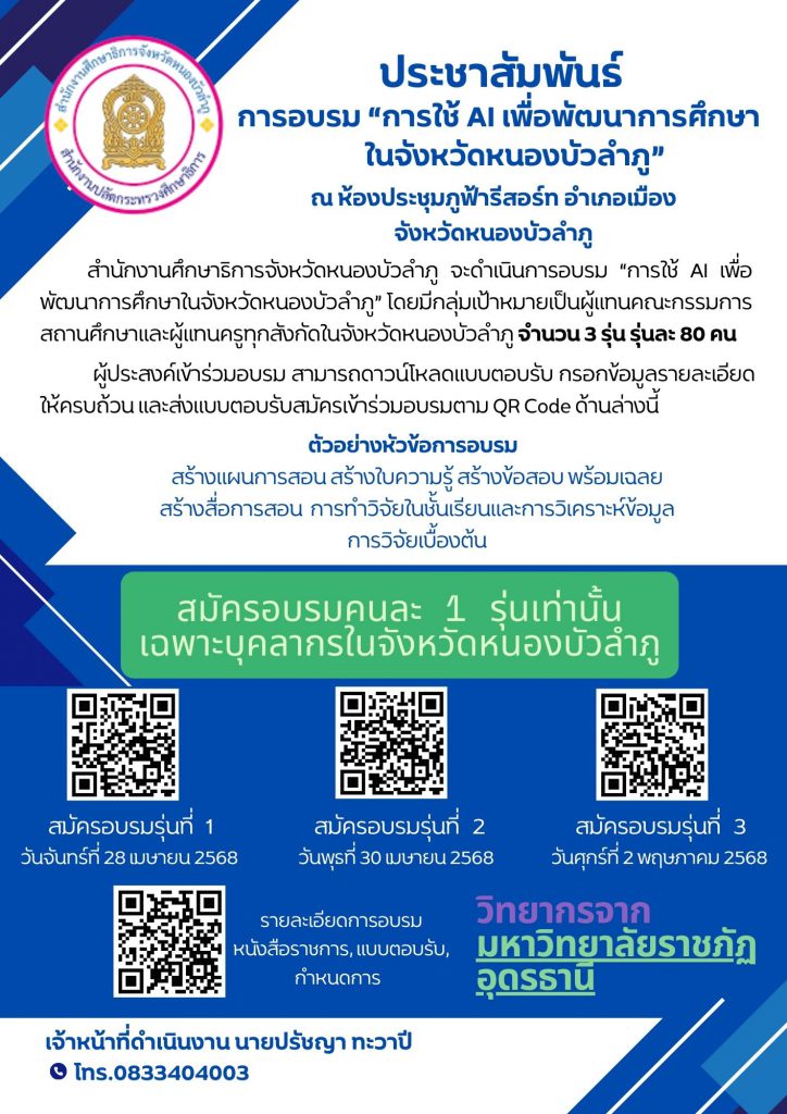 ประกาศรายชื่อผู้เข้าร่วมอบรม “การใช้ AI เพื่อพัฒนาการศึกษาในจังหวัดหนองบัวลำภู” ทั้ง 3 รุ่น