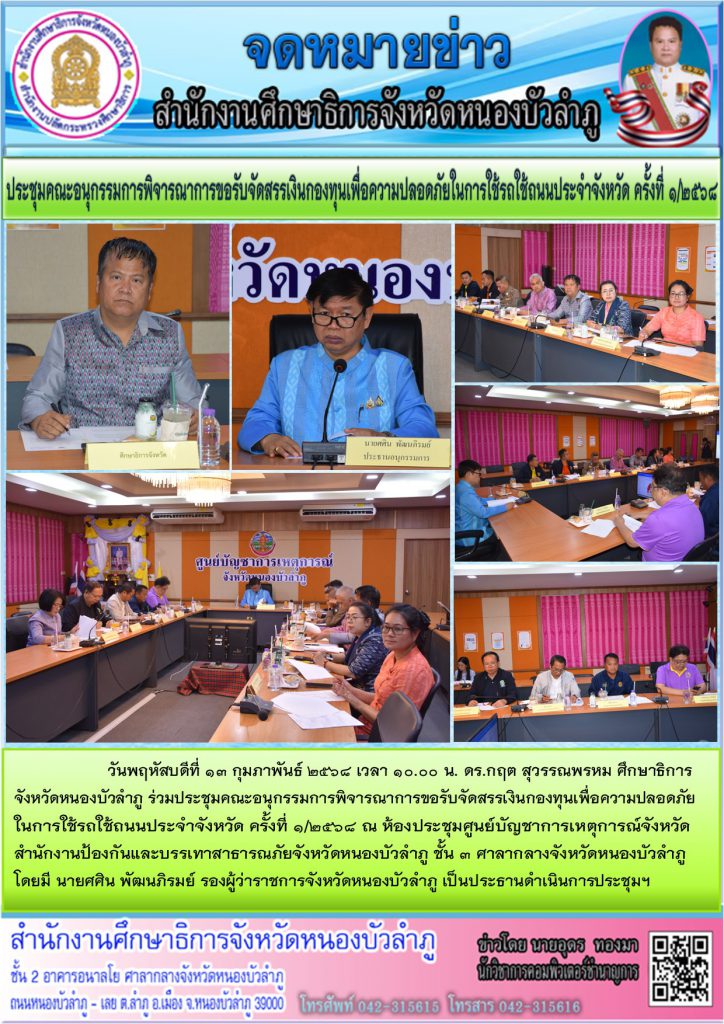 ประชุมคณะอนุกรรมการพิจารณาการขอรับจัดสรรเงินกองทุนเพื่อความปลอดภัยในการใช้ถนนประจำจังหวัด ครั้งที่ 1/2568