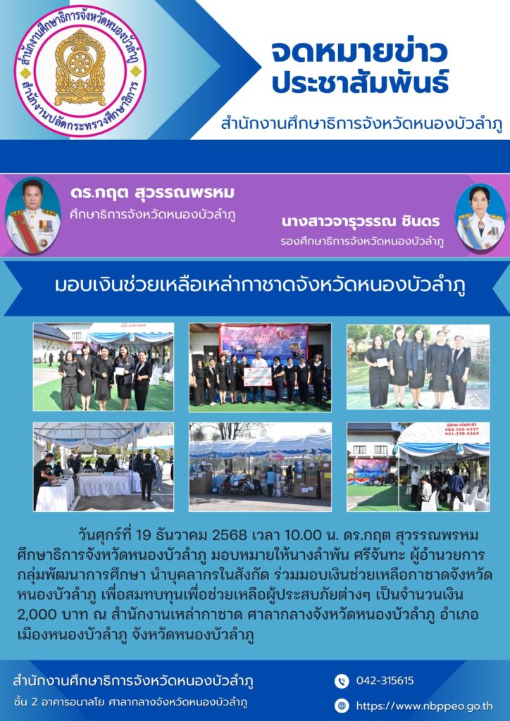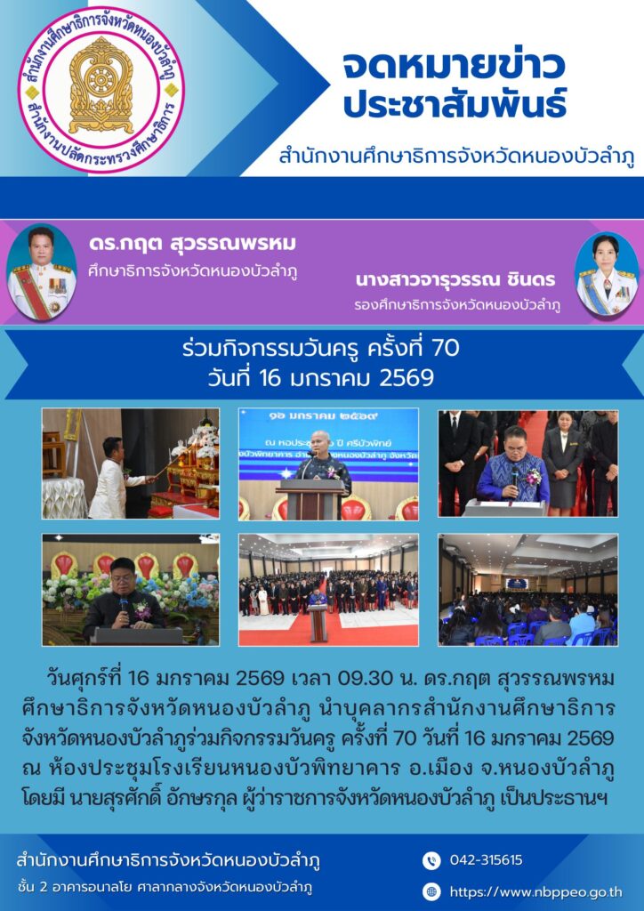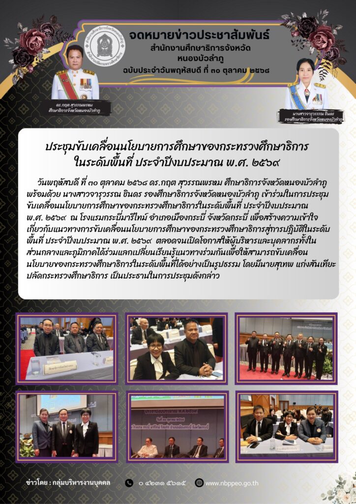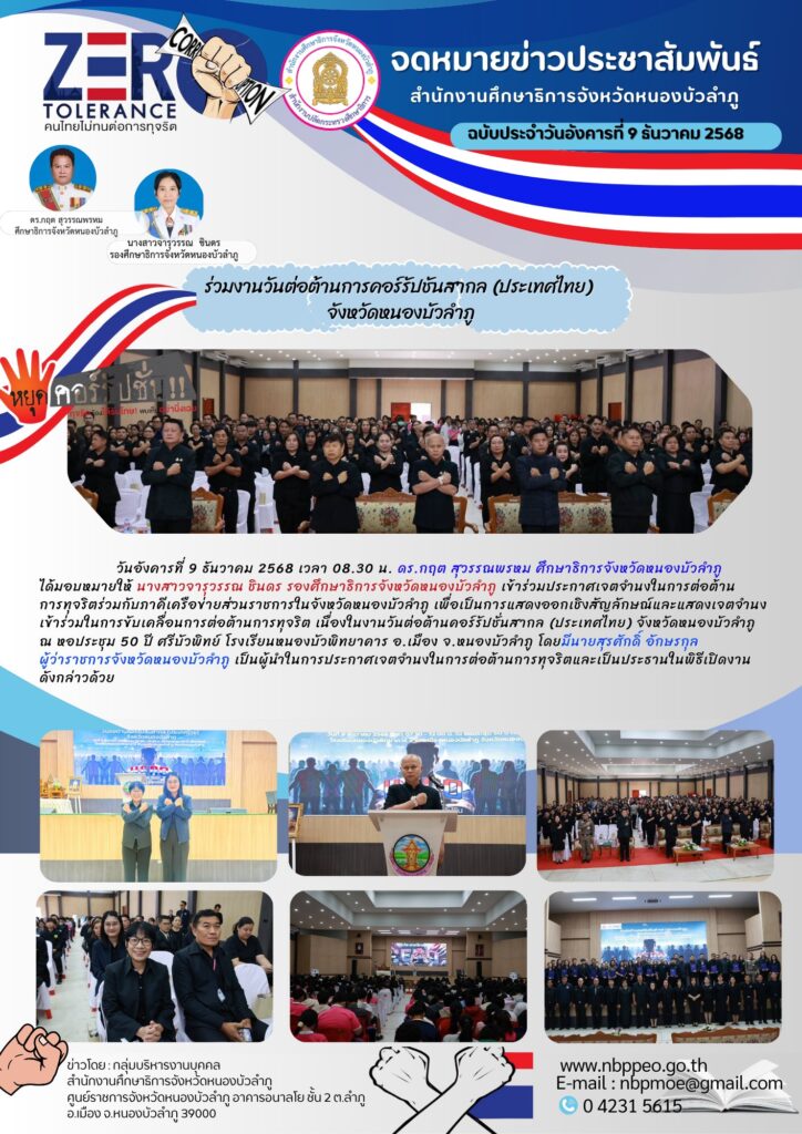 สำนักงานศึกษาธิการจังหวัดหนองบัวลำภู ร่วมกันประกาศเจตนารมณ์นโยบายไม่รับของขวัญของกำนัลทุกชนิดจากการปฏิบัติหน้าที่ (No Gift Policy) ประจำปีงบประมาณ 2569