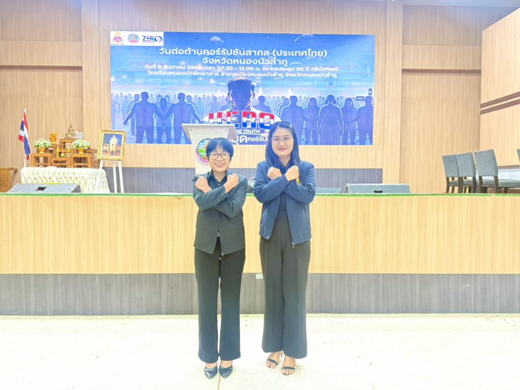 วันอังคารที่ 9 ธันวาคม 2568 เวลา 08.30 น. ดร.กฤต สุวรรณพรหม ศึกษาธิการจังหวัดหนองบัวลำภู ได้มอบหมายให้ นางสาวจารุวรรณ ชินดร รองศึกษาธิการจังหวัดหนองบัวลำภู เข้าร่วมประกาศเจตจำนงในการต่อต้านการทุจริตร่วมกับภาคีเครือข่ายส่วนราชการในจังหวัดหนองบัวลำภู เพื่อเป็นการแสดงออกเชิงสัญลักษณ์และแสดงเจตจำนงเข้าร่วมในการขับเคลื่อนการต่อต้านการทุจริต เนื่องในงานวันต่อต้านคอร์รัปชั่นสากล (ประเทศไทย) จังหวัดหนองบัวลำภู ณ หอประชุม 50 ปี ศรีบัวพิทย์ โรงเรียนหนองบัวพิทยาคาร อ.เมือง จ.หนองบัวลำภู โดยมีนายสุรศักดิ์ อักษรกุล ผู้ว่าราชการจังหวัดหนองบัวลำภู เป็นผู้นำในการประกาศเจตจำนงในการต่อต้านการทุจริตและเป็นประธานในพิธีเปิดงานดังกล่าวด้วย